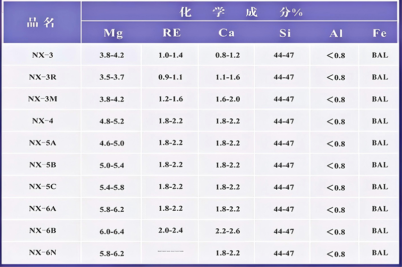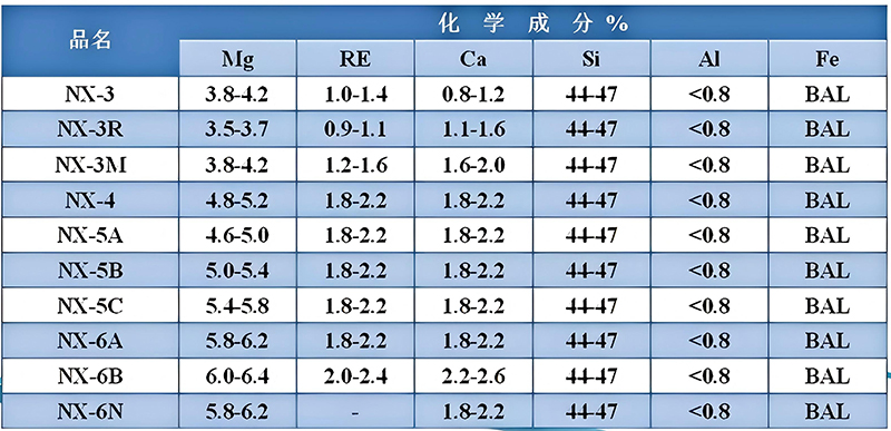 In China, the commonly used nodularizer is ferrosilicon rare earth magnesium alloy, while most foreign countries use magnesium-based nodularizer (pure magnesium and magnesium alloys), and a few countries use calcium-based nodularizer.