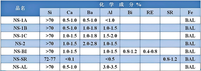 The typical composition of this inoculant is: Si ≥ 71%, Sr = 0.6%–1.2%, Ca ≤ 0.1%, Al ≤ 0.5%. Higher silicon content typically results in better and more stable inoculation effects. The requirements for calcium and aluminum content are lower but stricter compared to ferrosilicon and silicon-barium inoculants. The primary reason is that elevated levels of calcium and aluminum inhibit the graphitization potential of strontium, rendering the strontium inoculation ineffective.