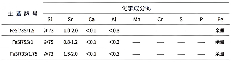 Strontium in silicon-strontium inoculant possesses strong inoculation effects. It offers advantages such as reducing chill, decreasing shrinkage porosity, improving cross-section uniformity, and generating minimal dross during treatment.