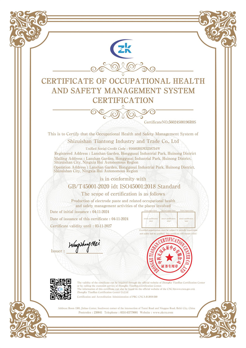 Shizuishan Tiantong Industry and Trade Co., Ltd. was established in 2005 and is located in Lan Mountain Park, Hongguozi Industrial Park, Hongguozui District, Shizuishan City, Ningxia Hui Autonomous Region, with a registered capital of 12 million yuan. It is a private enterprise specializing in the production and sales of Electrode Paste (self-baked electrode), Cold Ramming Paste, and Anhydrous Taphole Clay. The company covers an area of more than 100 mu and has a production capacity of 200,000 tons per year. It is 1 kilometer away from the 110 National Road and 3 kilometers away from the Beijing-Tibet Expressway, with convenient transportation.