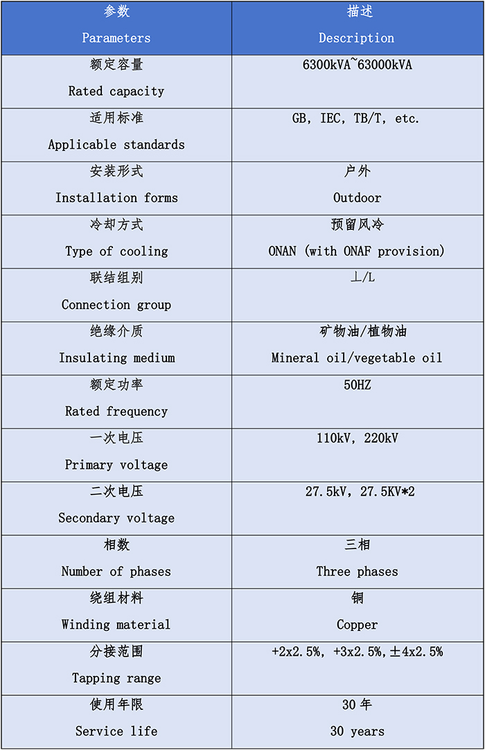 Balance:The Scott-connected transformer converts three-phase power of the power supplyinto two-phase power while maintaining balanced three-phase power supply. Thisconfiguration is particularly suitable for electrified railway traction systems, ensuringboth power supply stability and reliability.